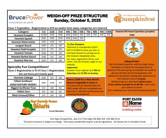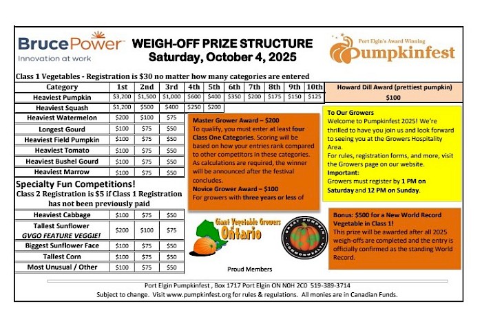 2025 Prize Charts and Rules are finalized.